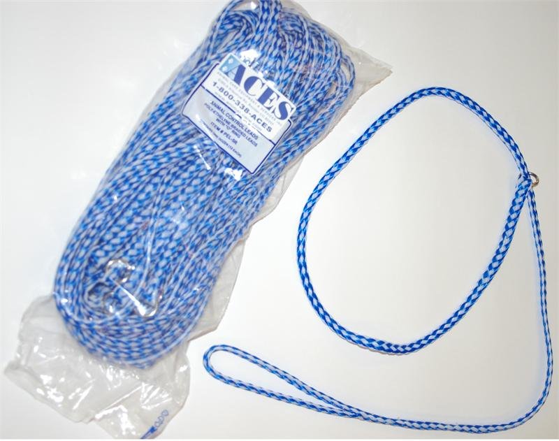 Heavy-duty, soft polyethylene roping lead with hand loop, metal ring. Excellent in clinics, shelters, and kennels. Fits comfortably in pocket and uncoils instantly when needed. Each lead is 60″ (152 cm) long, rated to hold over 300 lbs (136 kg) of tensile strength.