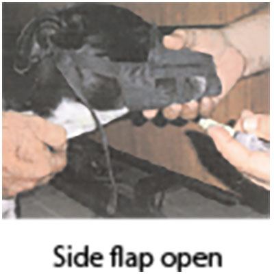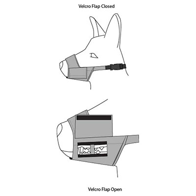 The C-Muzzle® is designed by a Veterinarian and has Velcro flaps which provide access to the patients mouth.