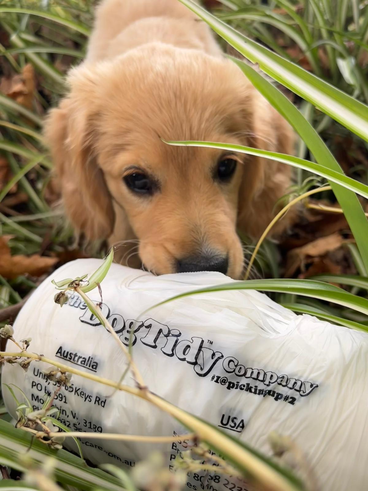 Compostable DogTidy Bags can be placed in your green bin or your home compost and will completely degrade back into organic materials!