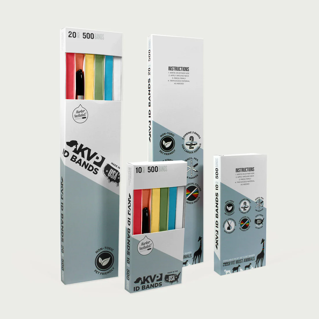 Used to identify animals in your facility, these ID bands stay on the animal and will accept marking from any pen. Made from a special fabric called Tyvek with peel-off gum tabs. Available in a variety of colours and sizes, they will accommodate everything from small kittens to large dogs. 500 per box. Free marker included!