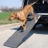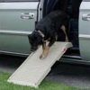 ACES PetStep Utility Ramp makes it a snap to load large dogs into vehicles, onto grooming or exam tables. Saves your back and is comfortable for the dog. Can be used at home, too, for aging dogs. Perfect for anyone handling larger dogs. Features no-slip rubber feet and bumpers and a new, improved traction system. The PetStep is 6′(183 cm) long but folds in half for easy storage and transport. Beige color and only 9 kg. Tested to 225 kg. load. All stainless and space-age plastic construction. Set of legs (sold separately) converts PetStep into table. Side handles for use as carry-stretcher.