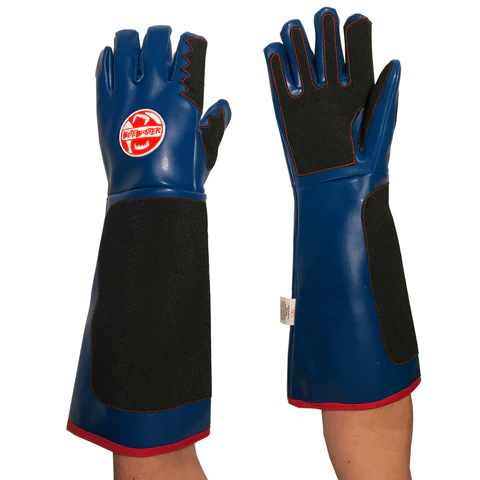 The all new “son of beast” – descendant of “THE BEAST”! Same core glove with extra grippy patch puncture resistant material over most of the glove with double reinforced finger and thumb tips, and middle of hand between index and thumb where most bites occur. 26″ (66cm) gauntlet.