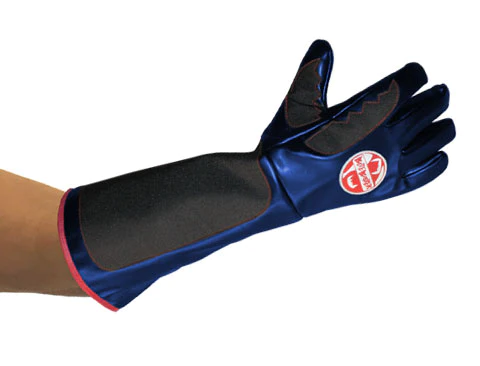The Beast – Man-made, non-leather, the all-in-one utility glove consisting of a proprietary blend of double layers of Kevlar® and synthetic puncture resistant polymers. Made for animal handling but used by many police, fire and military personnel. Available in an 18″ (46cm).